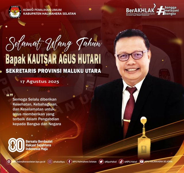 SELAMAT ULANG TAHUN SEKRETARIS KPU PROVINSI MALUKU UTARA BAPAK KAUTSAR AGUS HUTARI