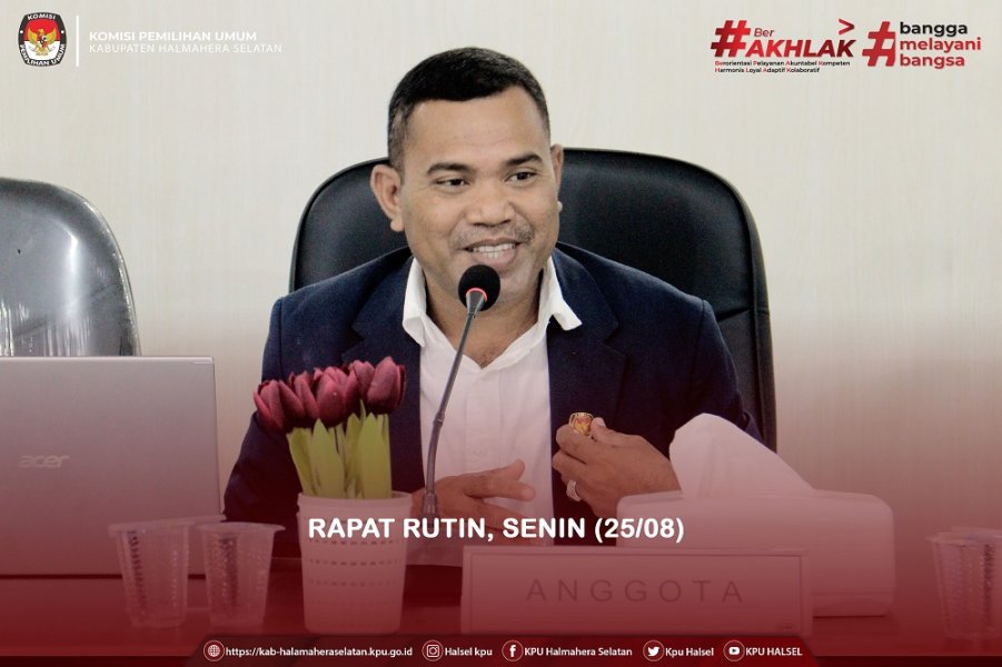 #TemanPemilih, Senin (25/08/2025) KPU Kabupaten Halmahera Selatan melaksanakan rapat rutin. Rapat dipimpin oleh Kepala Divisi Perencanaan, Data, dan Informasi KPU Kabupaten Halmahera Selatan, Bapak Hendra Kamarullah, serta dihadiri oleh Kasubbag Keuangan, Umum, dan Logistik; Kasubbag SDM dan Parmas; serta Kasubbag Perencanaan, Data, dan Informasi. Agenda rapat membahas arahan Ketua KPU Kabupaten Halmahera Selatan terkait pelaksanaan rapat rutin Senin, pagu anggaran tahun 2025, pencocokan dan penelitian terbatas data pemilih berkelanjutan, serta sosialisasi pendidikan pemilih (Sosdiklih). Adapun hasil rapat sebagai berikut: 1. Rapat rutin Senin menjadi forum evaluasi mingguan sekaligus mempererat silaturahmi internal KPU Halsel. 2. Sub Bagian diminta segera menyusun timeline kegiatan sesuai arahan Sekretaris. 3. Pencocokan dan penelitian terbatas akan dilaksanakan pada September 2025 di 3 kecamatan. 4. Anggaran sosialisasi pendidikan pemilih serta revisi DIPA telah ditetapkan, pelaksanaannya menunggu tindak lanjut koordinasi. #KPUMelayani #KPUHalsel #KPURI FOTO RAPAT ....