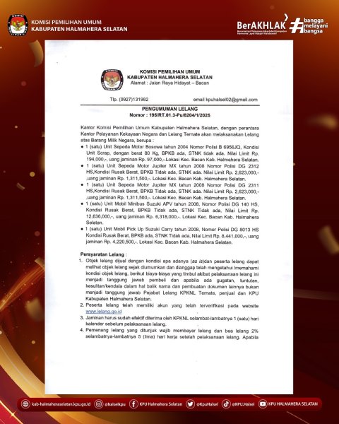 PENGUMUMAN LELANG KENDARAAN KPU KABUPATEN HALMAHERA SELATAN