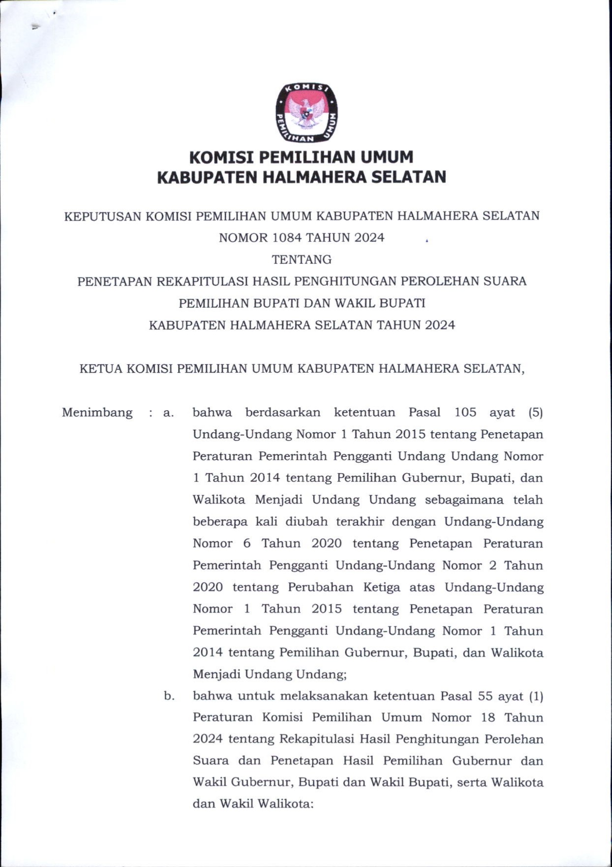 PENGUMUMAN PENETAPAN REKAPITULASI HASIL PENGHITUNGAN PEROLEHAN SUARA KABUPATEN HALMAHERA SELATAN Rabu, 04 Desember 2024 02:20 558 PENGUMUMAN PENETAPAN REKAPITULASI HASIL PENGHITUNGAN PEROLEHAN SUARA KABUPATEN HALMAHERA SELATAN Baca Selengkapnya