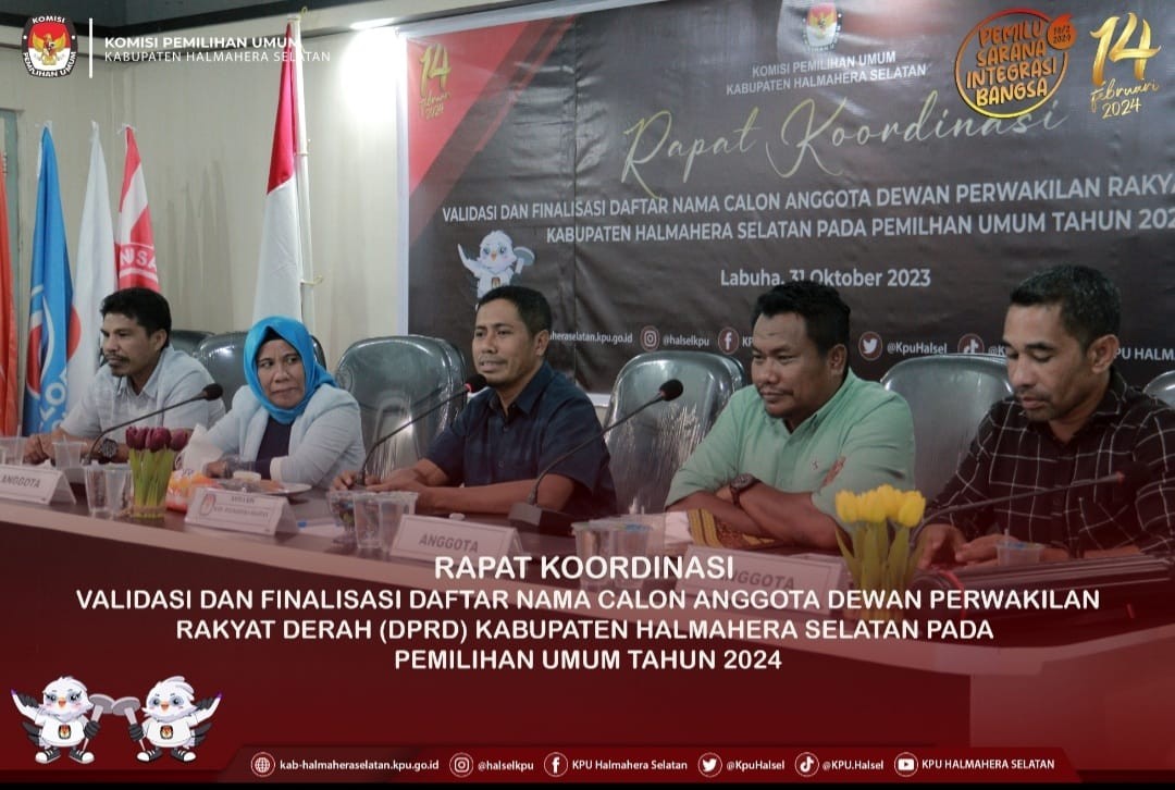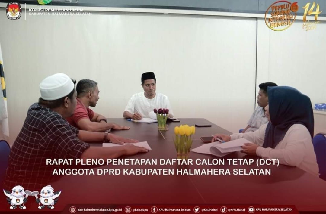 Ketua dan Anggota KPU Kabupaten Halmahera Selatan melakukan Rapat Pleno dan Penetapan Daftar Calon Sementara (DCS) pada tanggal 18 Agustus 2023, sebagai berikut :