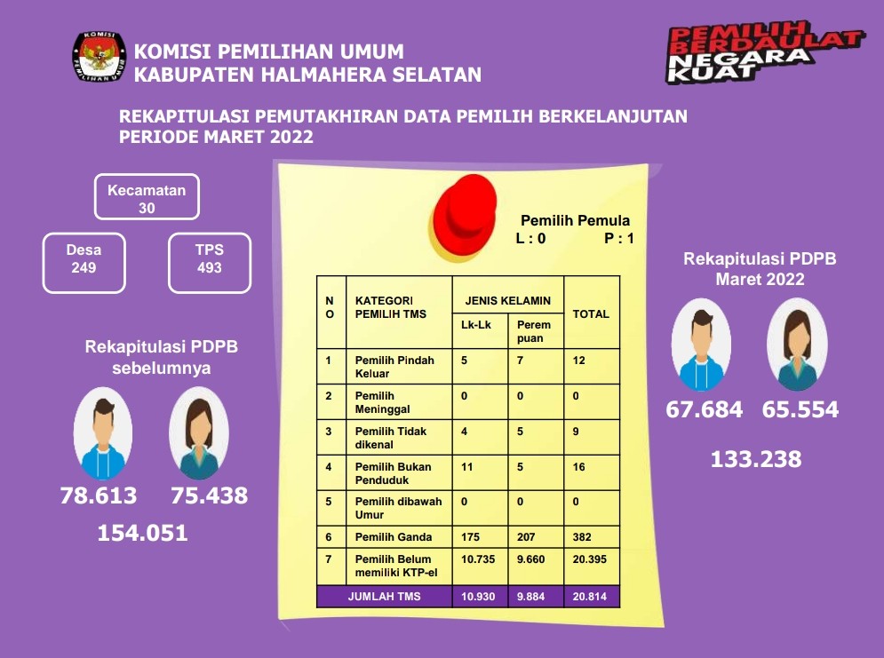 Pengumuman Pemutakhiran Data Pemilih Berkelanjutan (PDPB) Periode Bulan Maret Tahun 2022 Rabu, 25 Mei 2022 20:22 348 Pengumuman Pemutakhiran Data Pemilih Berkelanjutan (PDPB) Periode Bulan Maret Tahun 2022 Baca Selengkapnya