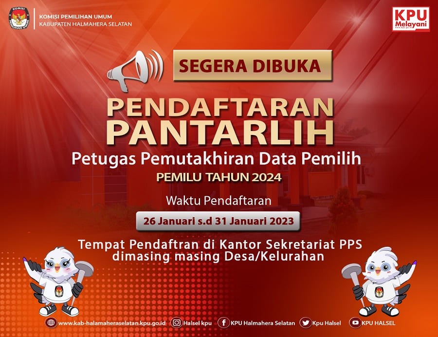 Pengumuman PANTARLIH (Petugas Pemutakhiran Data Pemilih) Pada Pemilihan Umum Tahun 2024 Kamis, 26 Januari 2023 13:00 213 Baca Selengkapnya
